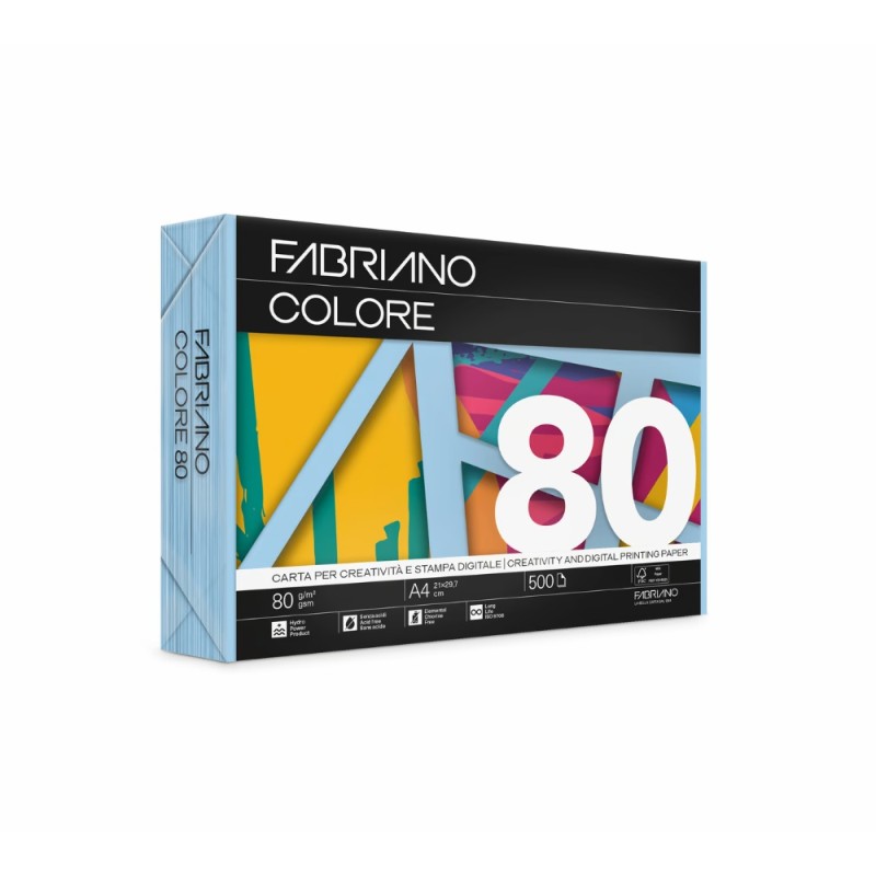 Fabriano Colore A4 80g u Azzuro boji je visokokvalitetni papir u boji koji kombinuje italijanske tradicije sa fleksibilnim, modernim performansama. Boja „Azzuro“ je svijetla, živopisna plava koja prenosi visokotehnološki i visokokvalitetni izgled sa nivoom profesionalizma, kao i kreativnosti