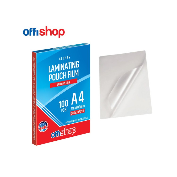 Folija za plastifikaciju A4 80 mikrona OF538 (Offishop) je visokokvalitetna folija za laminiranje koja pruža zaštitu dokumentima A4 formata. Ove folije za laminiranje se obično koriste u školama i kancelarijama kako bi se spriječilo oštećenje dokumenata uzrokovano habanjem, prljavštinom i vlagom