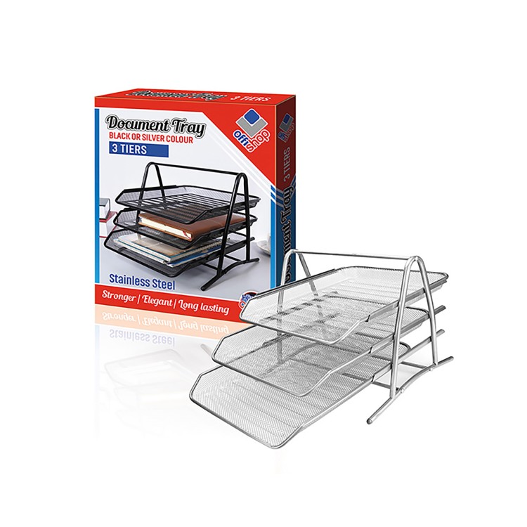 Polica za dokumenta Žičana 1/3 OF599 je profesionalni organizator za sto sa 3 nivoa. Proizvod se isporučuje u setu od tri horizontalne fioke napravljene od žičane mreže koje se mogu spojiti sa metalnim okvirom