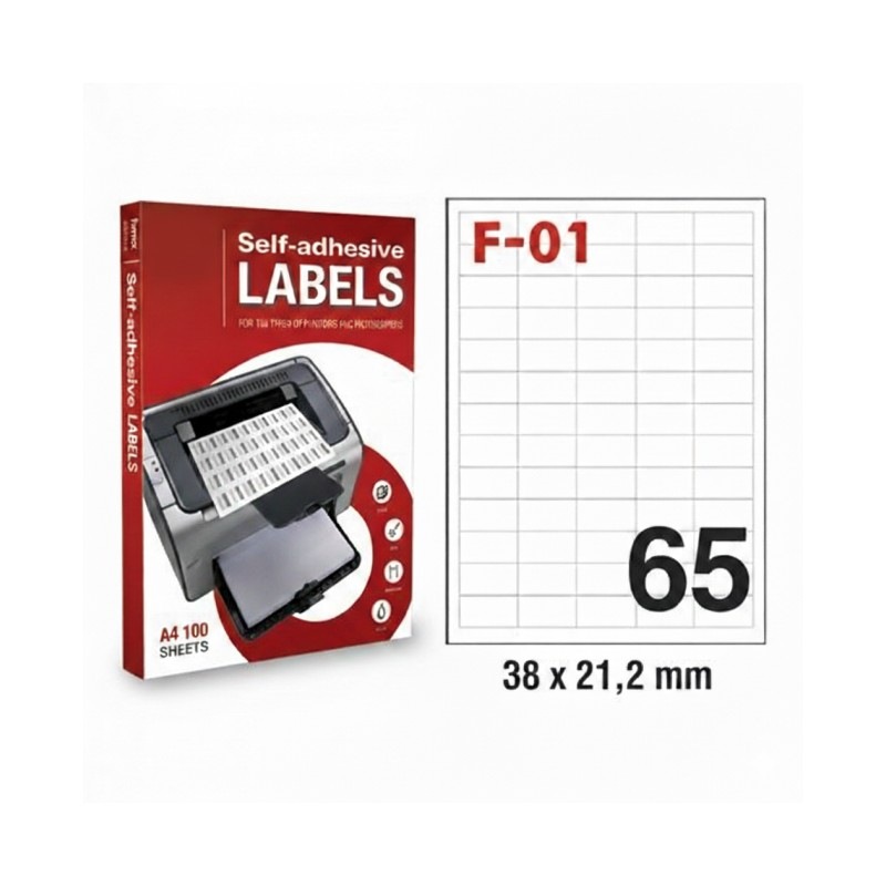 Ove etikete su višekratne, višenamjenske naljepnice. Napravljene su za laku identifikaciju i kategorizaciju. Isporučuju se kao isječene etikete na A4 podlozi, sa približno 65 etiketa po stranici (5 kolona x 13 redova)